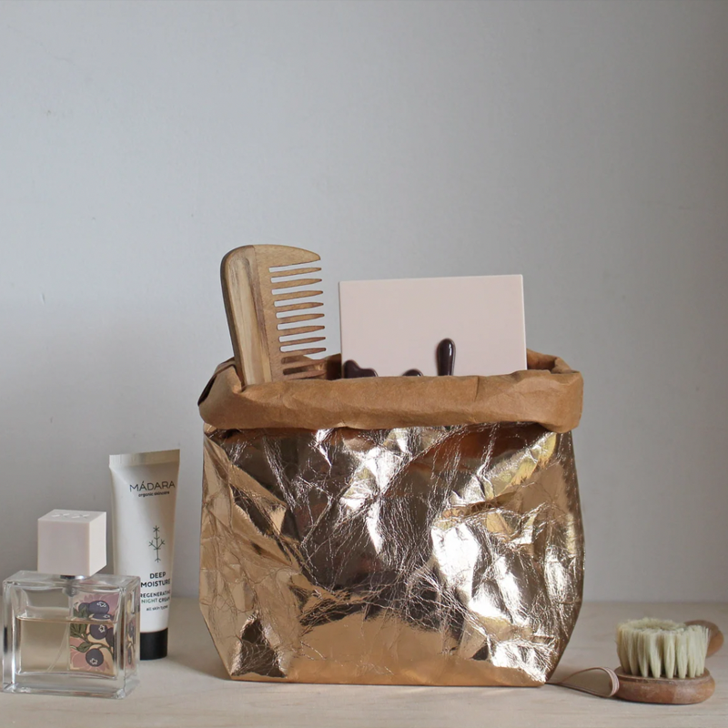 Bowl de papel lavable metalizado mediano, apto para diversos usos (ver fotos). Hecho de material biodegradable.