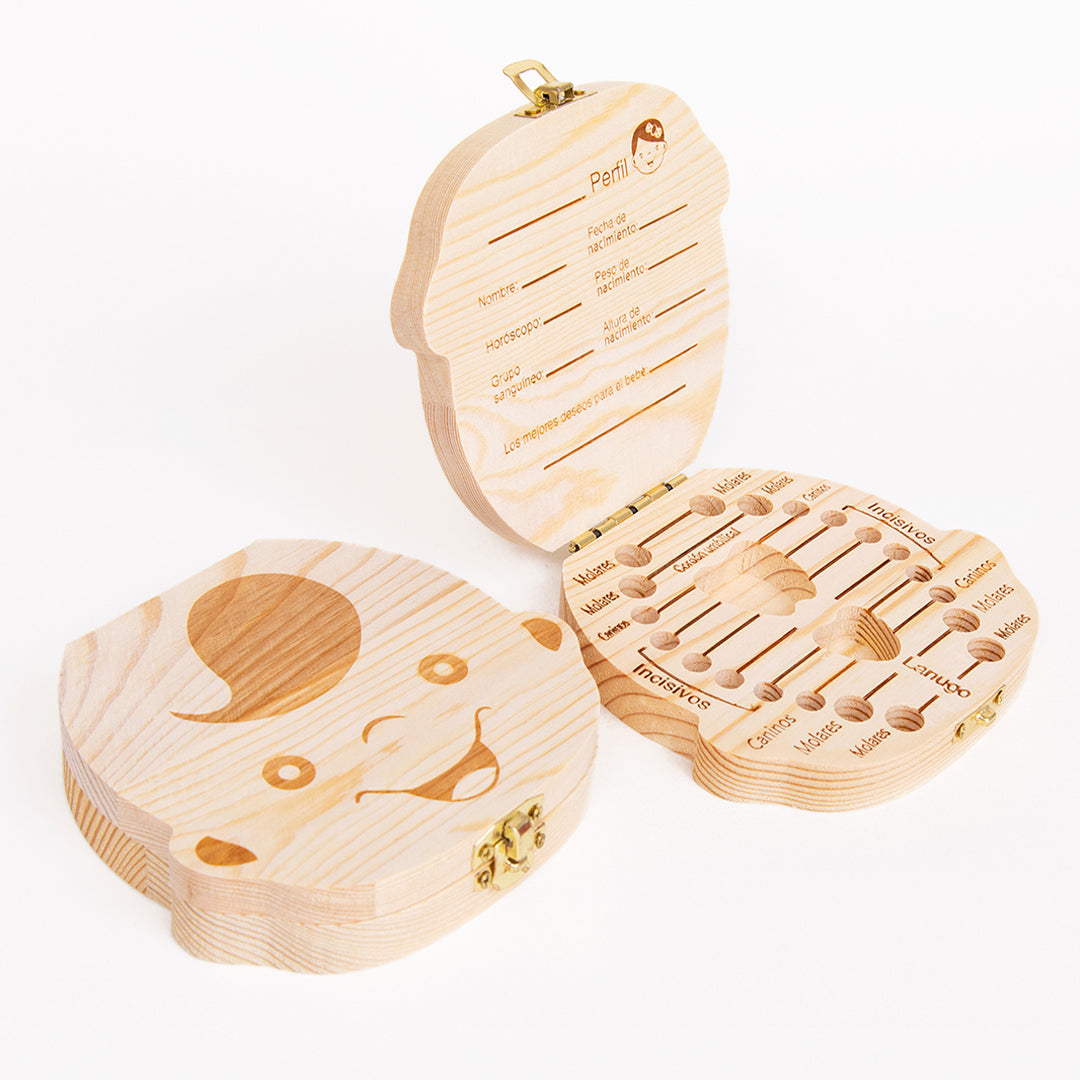 Si buscas regalos para bebés originales, esta cajita te va a copar! ideal para guardar los dientes de leche, el cordón umbilical y el lanugo del bebé. una forma creativa de guardar recuerdos de la más tierna infancia. fabricado de madera de pino con cierre metálico tapa con espacios para escribir datos del bebé interior con espacios para colocar los dientes, el cordón umbilical y el lanugo del bebé