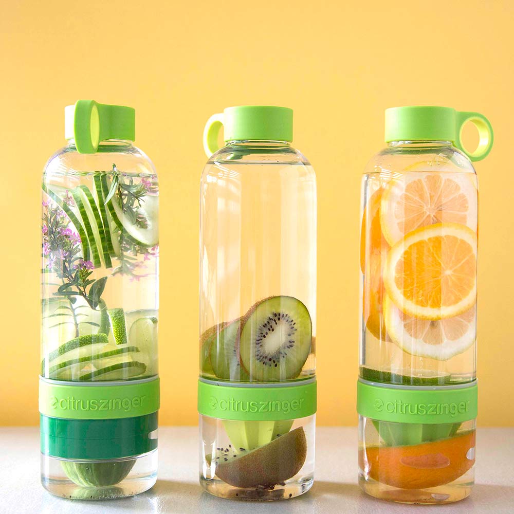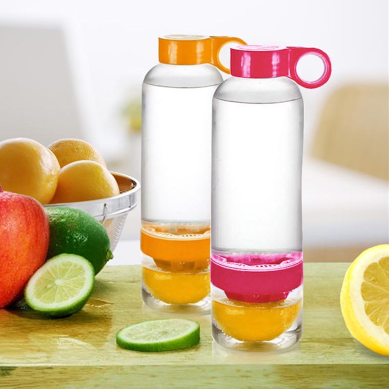 Cantimplora que permite hacer aguas saborizadas. Cuenta con un exprimidor manual interno y un filtro para no dejar pasar la pulpa o semillas! No más excusas para hidratarte ;)