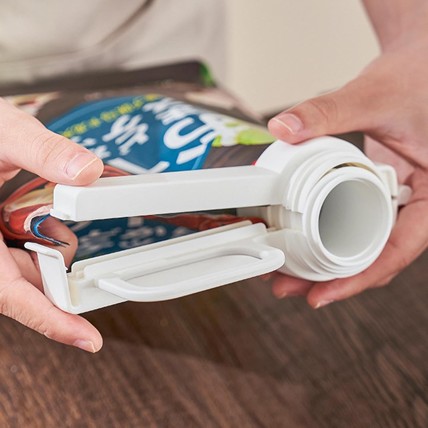 Mantené tus snacks frescos con este práctico clip sellador con pico vertedor.