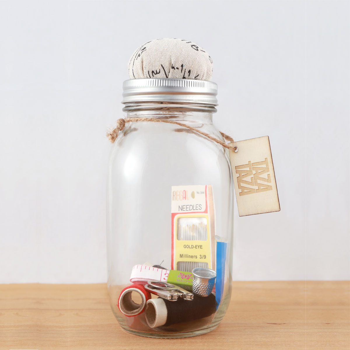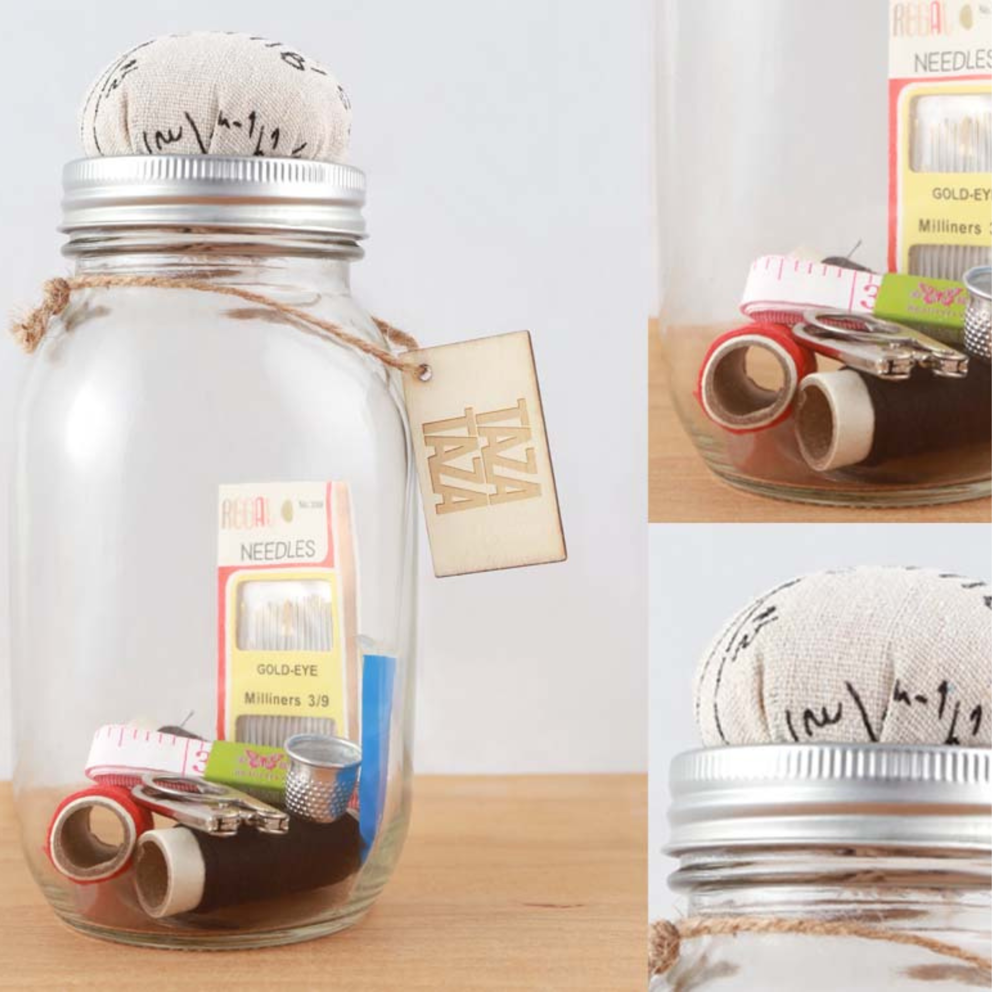 Incluye: cinta métrica, tijerín, hilos, pack de agujas y dedal.
