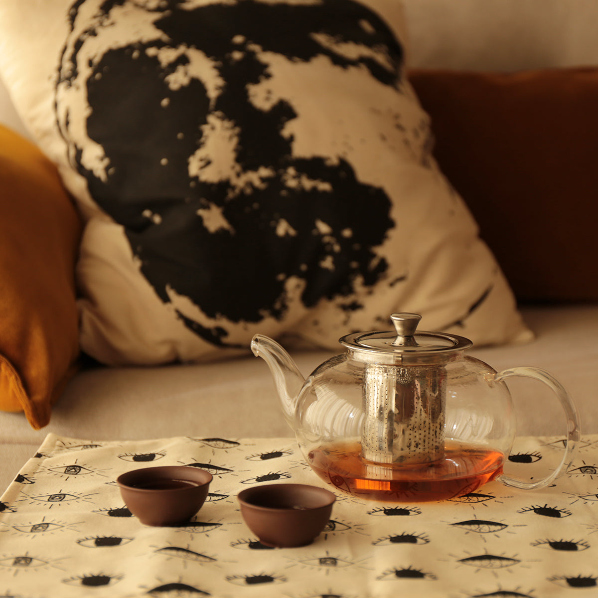 Individuales de algodón. El dibujo fue hecho a mano, la técnica de estampado es serigrafía.