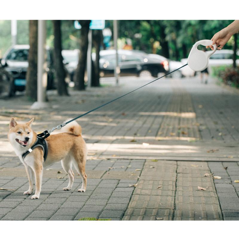 Correa retráctil para mascotas que se extiende hasta 5m. la tensión máxima es de 85kg, duradera y resistente. la correa se puede estirar y retroceder automáticamente con el botón de freno y bloqueo evitando que la mascota avance.