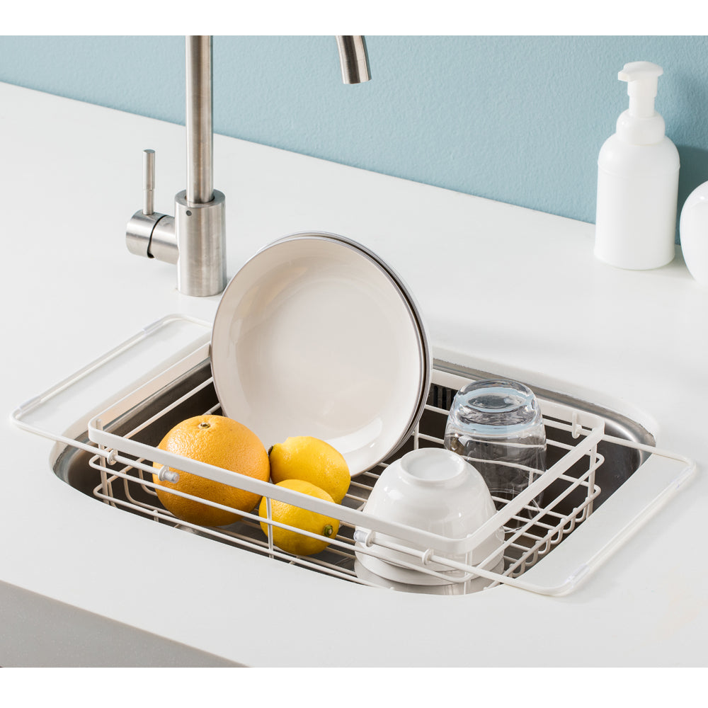 Práctico escurridor extensible (de 36 a 51cm), se adapta a todo tipo de piletas. También cuenta con apoyos para ser colocado sobre la mesada.