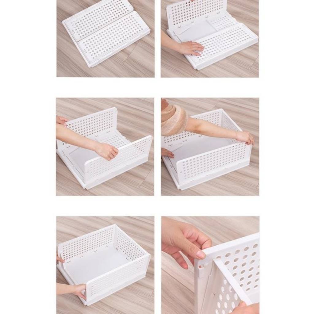 Estante cajonera plegable, apilable y extraible de plástico - 18,5cm alto