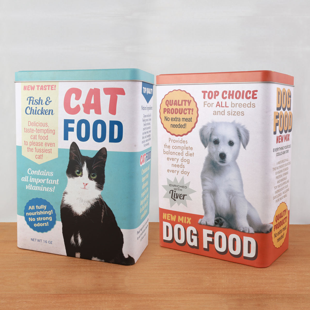 Latas con diseño vintage para guardar la comida de tu perro o tu gato. Practicidad y onda en un solo producto!