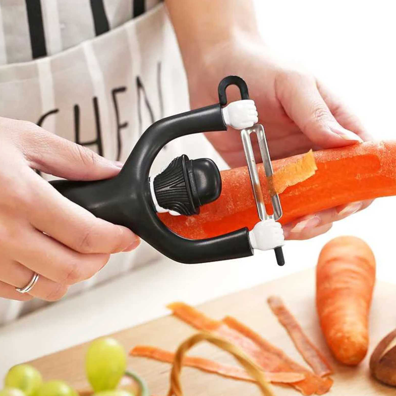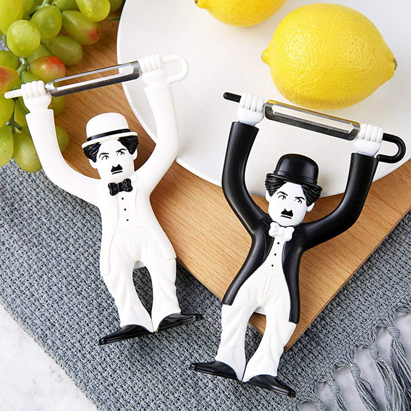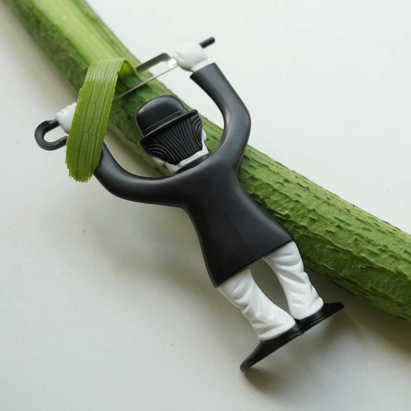 Para los amantes de ponerle onda a la cocina! Pelador para frutas y verduras en forma de Chaplin. Filo de alta calidad, apto para pelar desde un tomate hasta una papa.