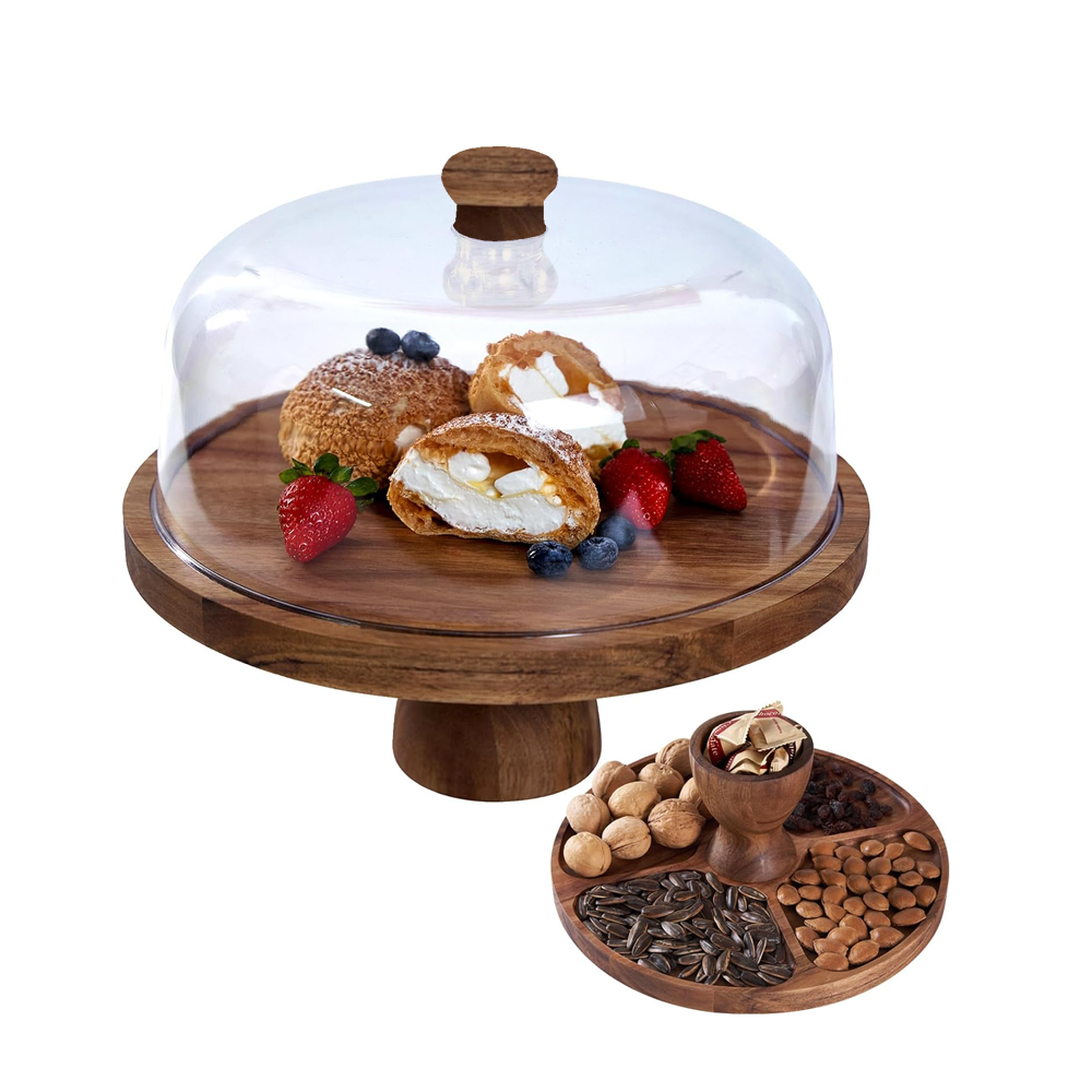 Pie para Tortas de Madera con Cúpula Acrílica – Diseño 2 en 1