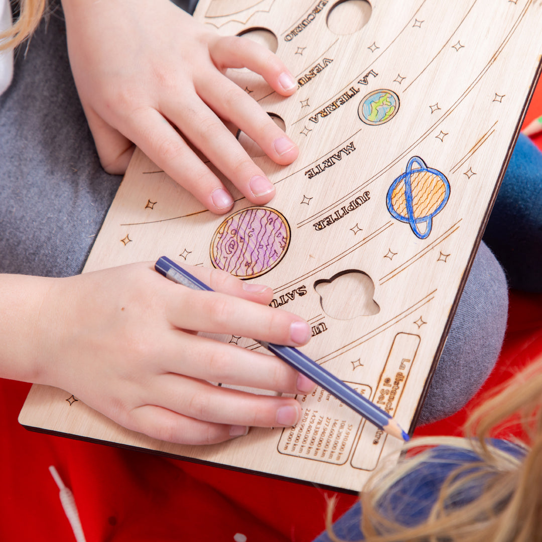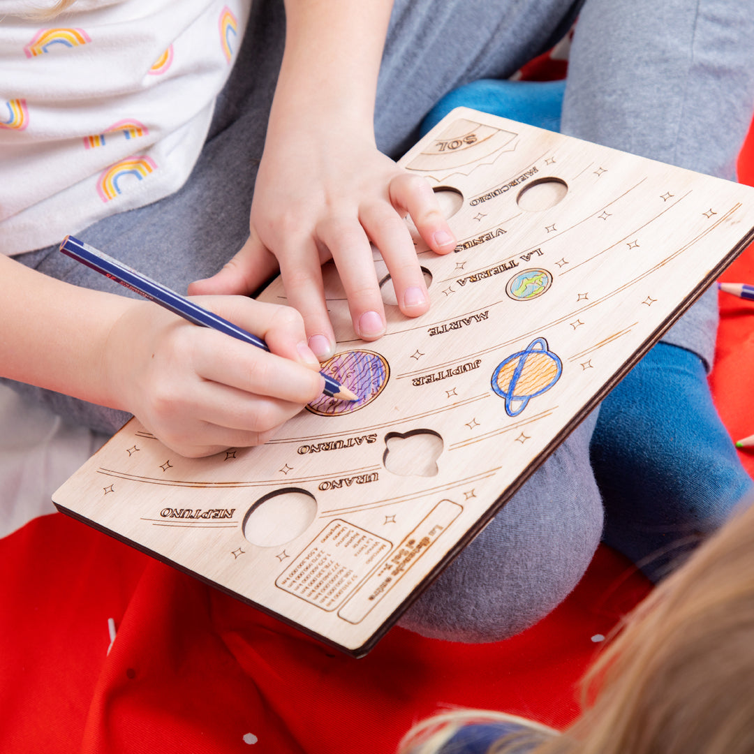 Aprender sobre los planetas nunca fue más divertido con este puzzle. viene con especificaciones de la distancia de cada planeta con el sol.