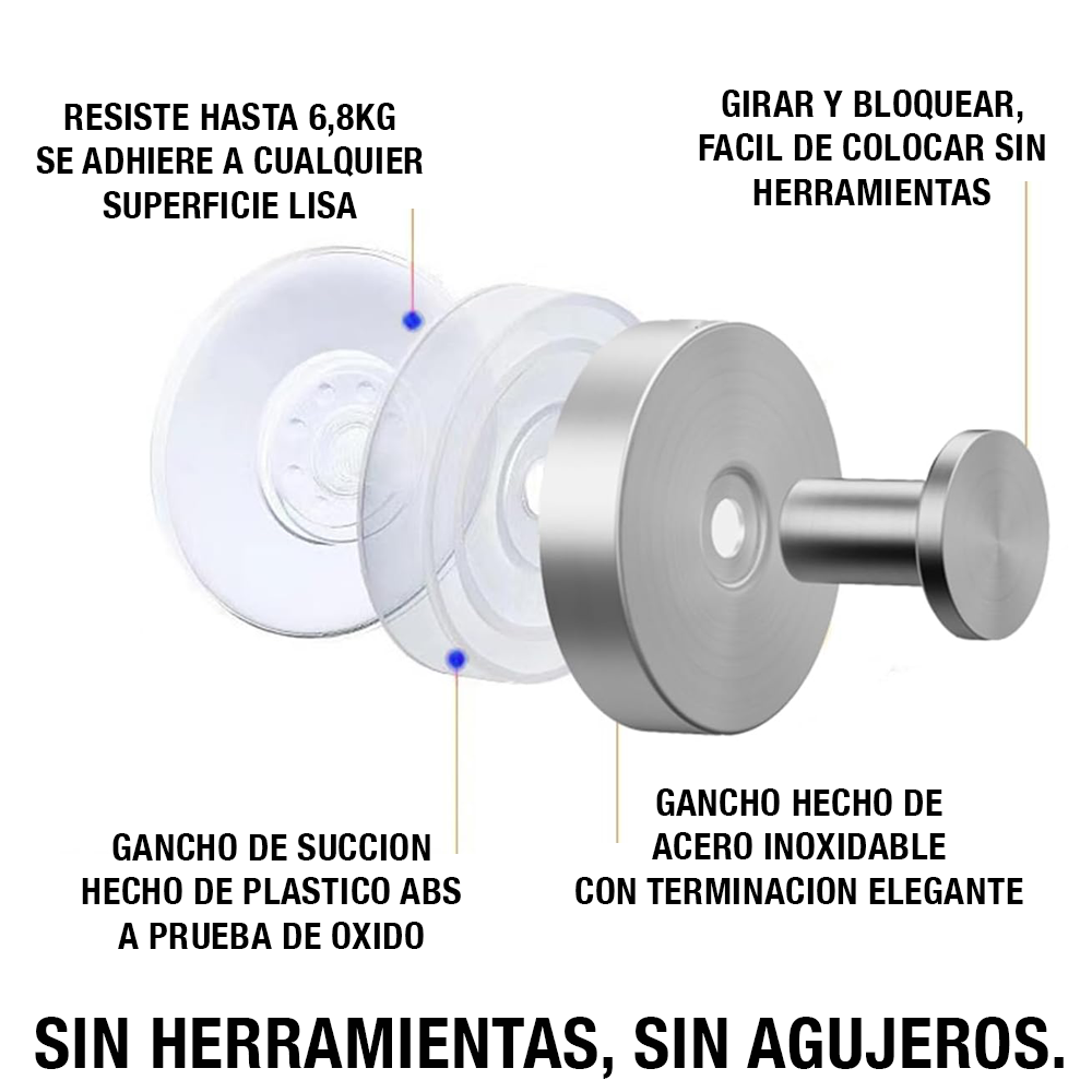 Maximizá el espacio y organizá tu hogar con los Ganchos de Succión de alta resistencia. Diseñados para adherirse firmemente a superficies lisas como vidrio, azulejos, mármol o acero inoxidable, ofrecen una solución práctica sin necesidad de perforar.