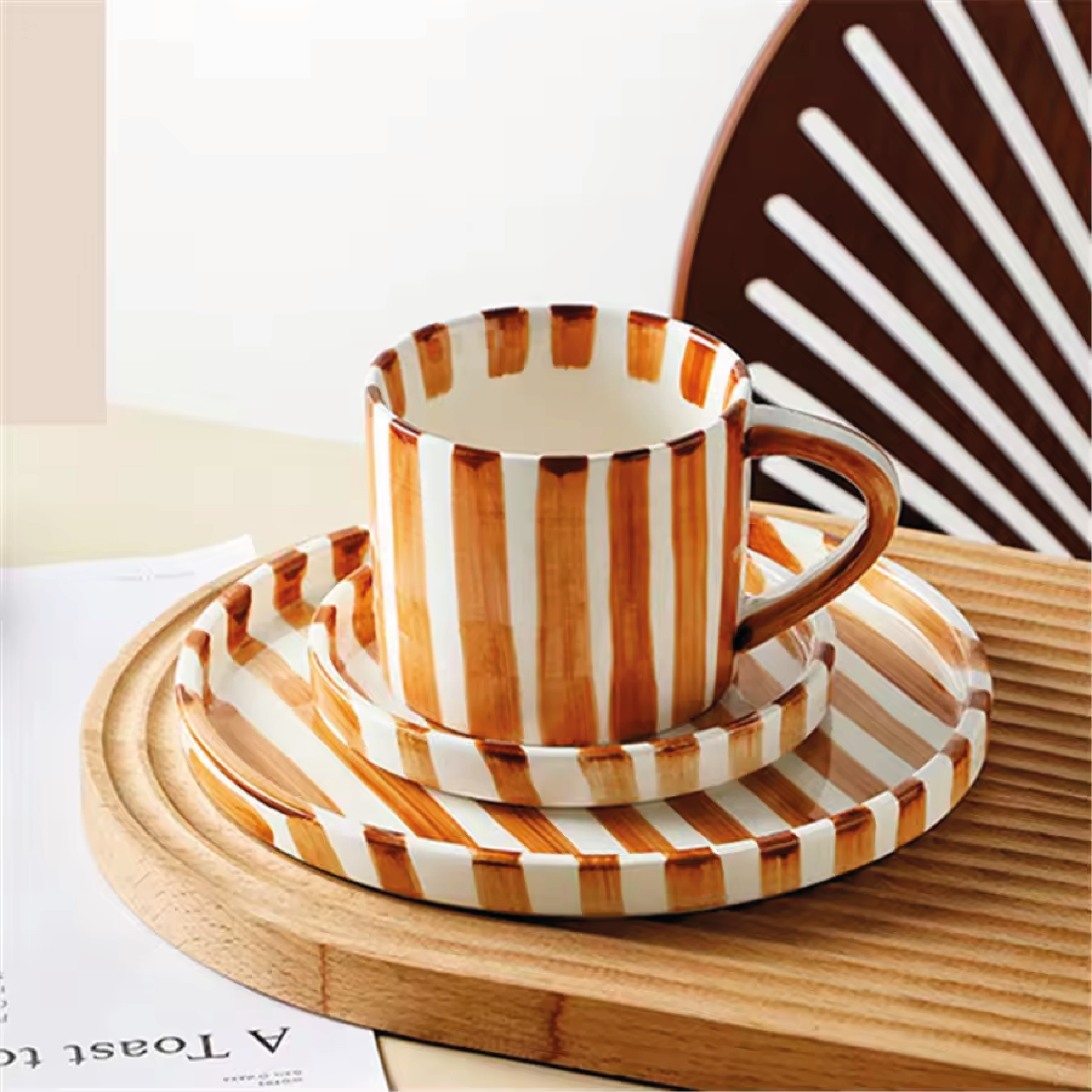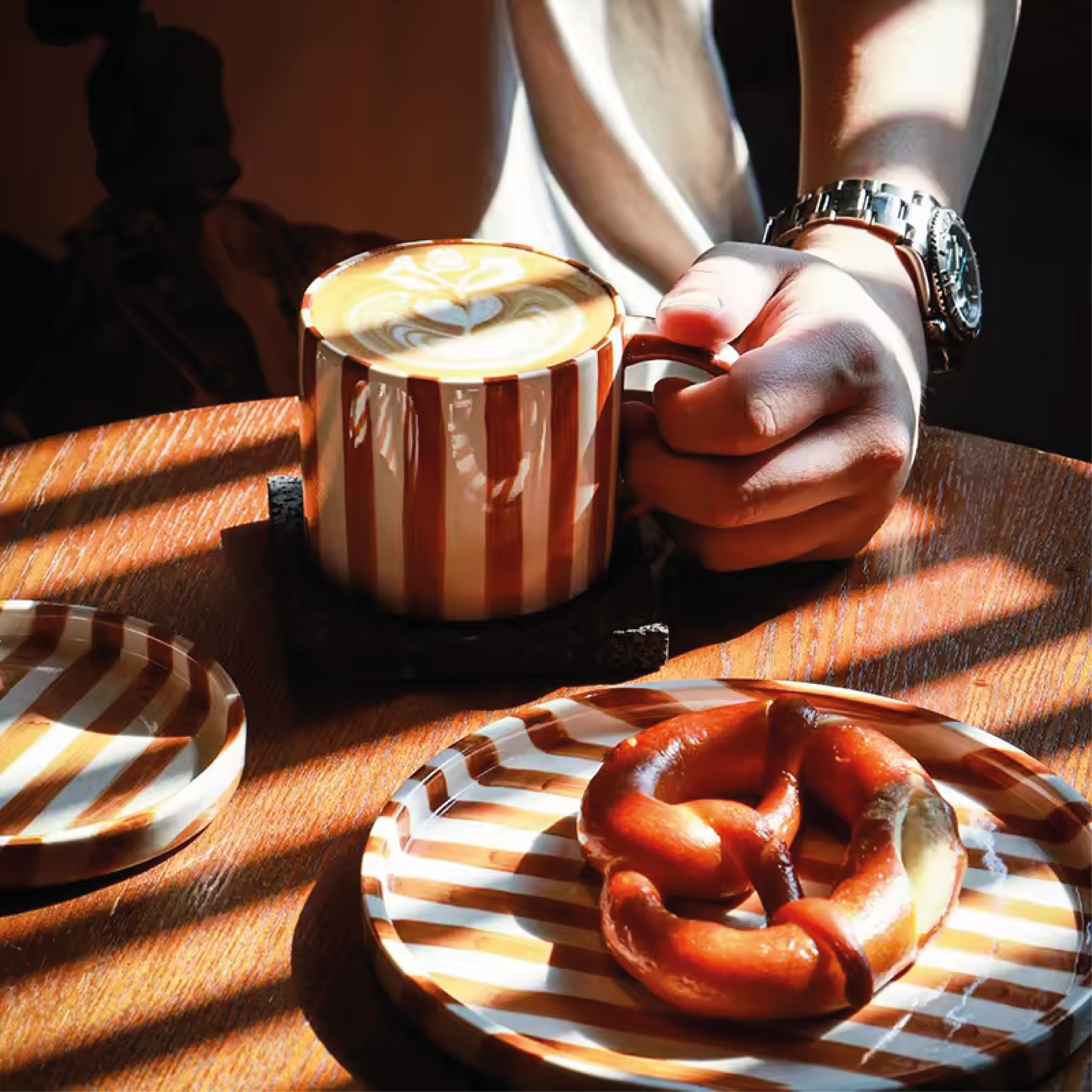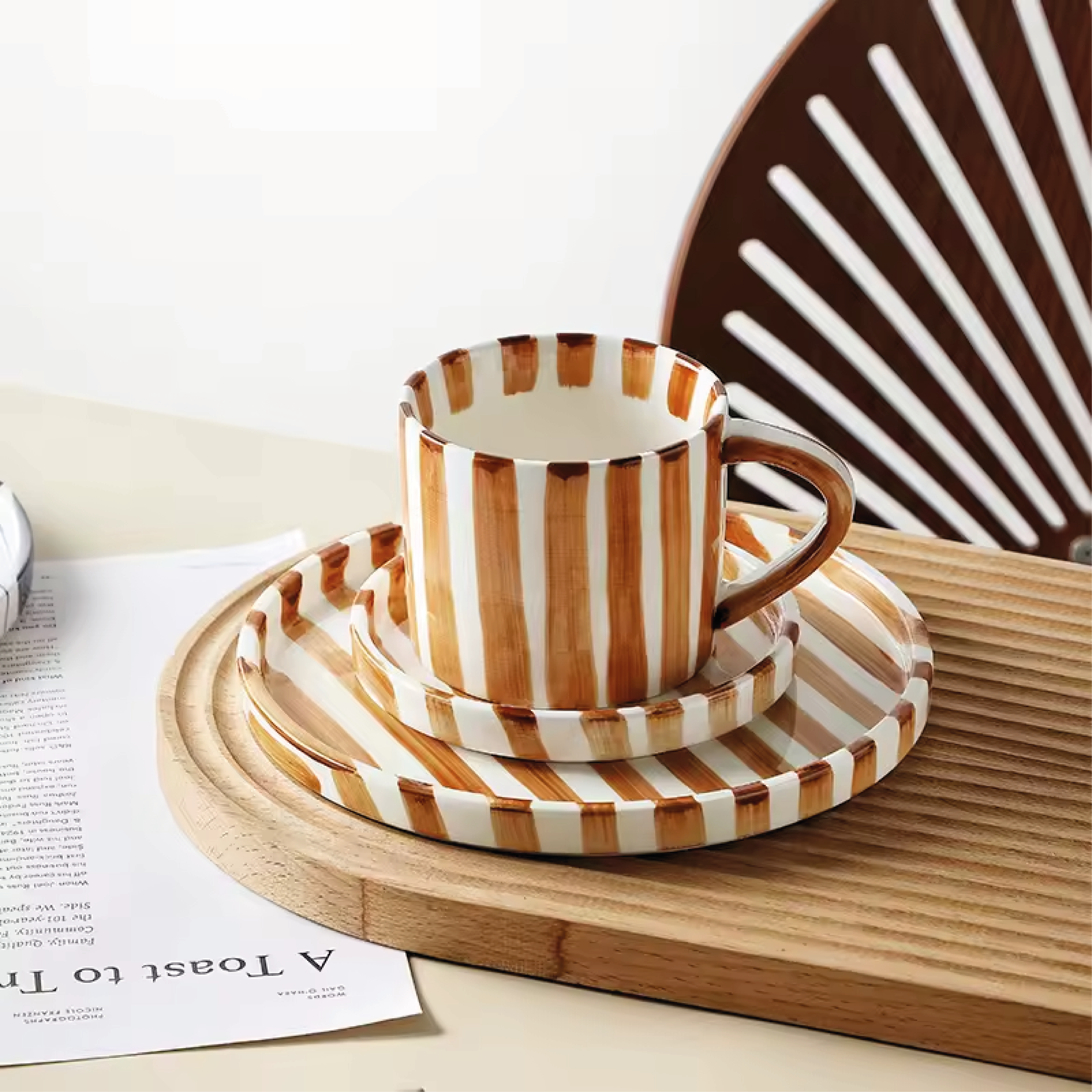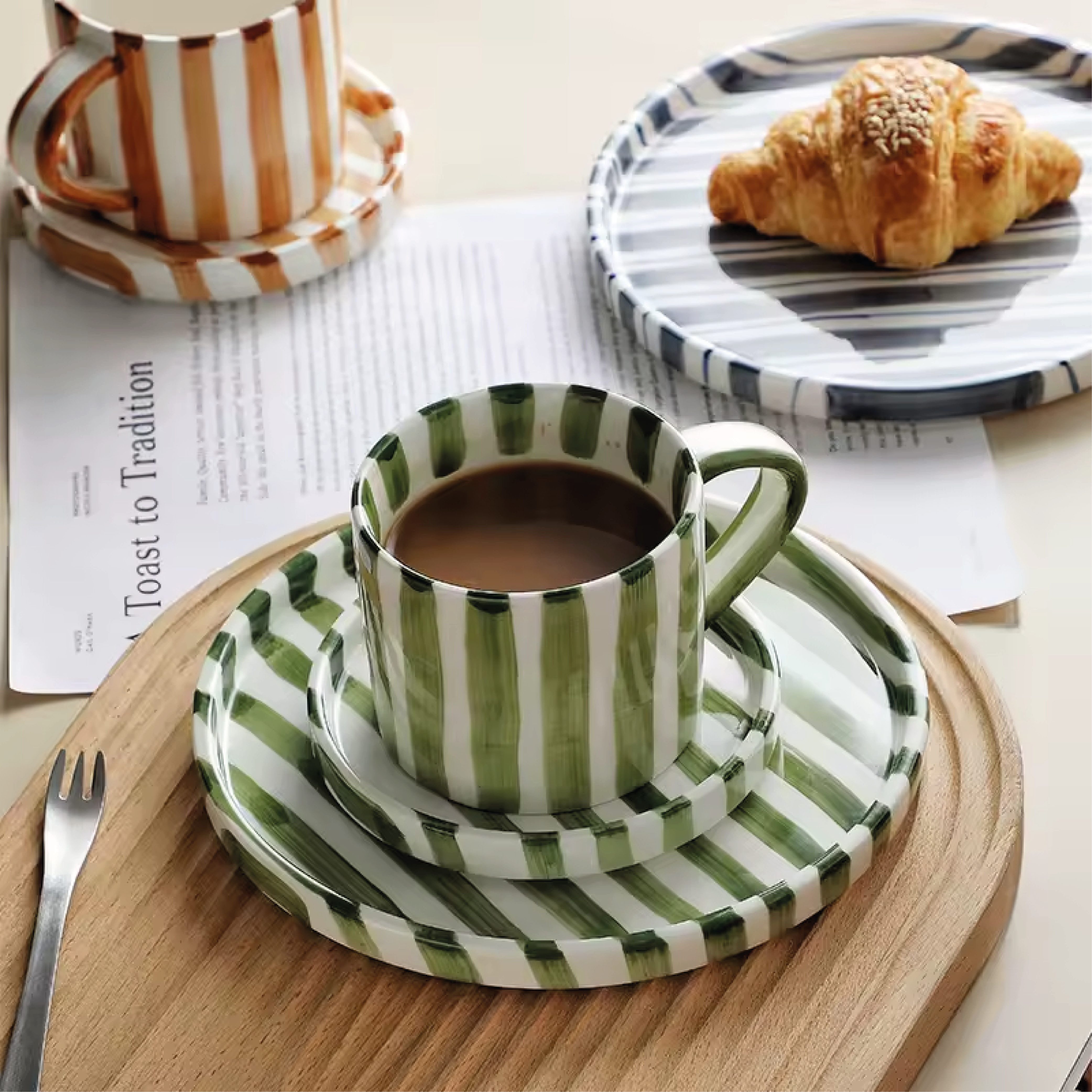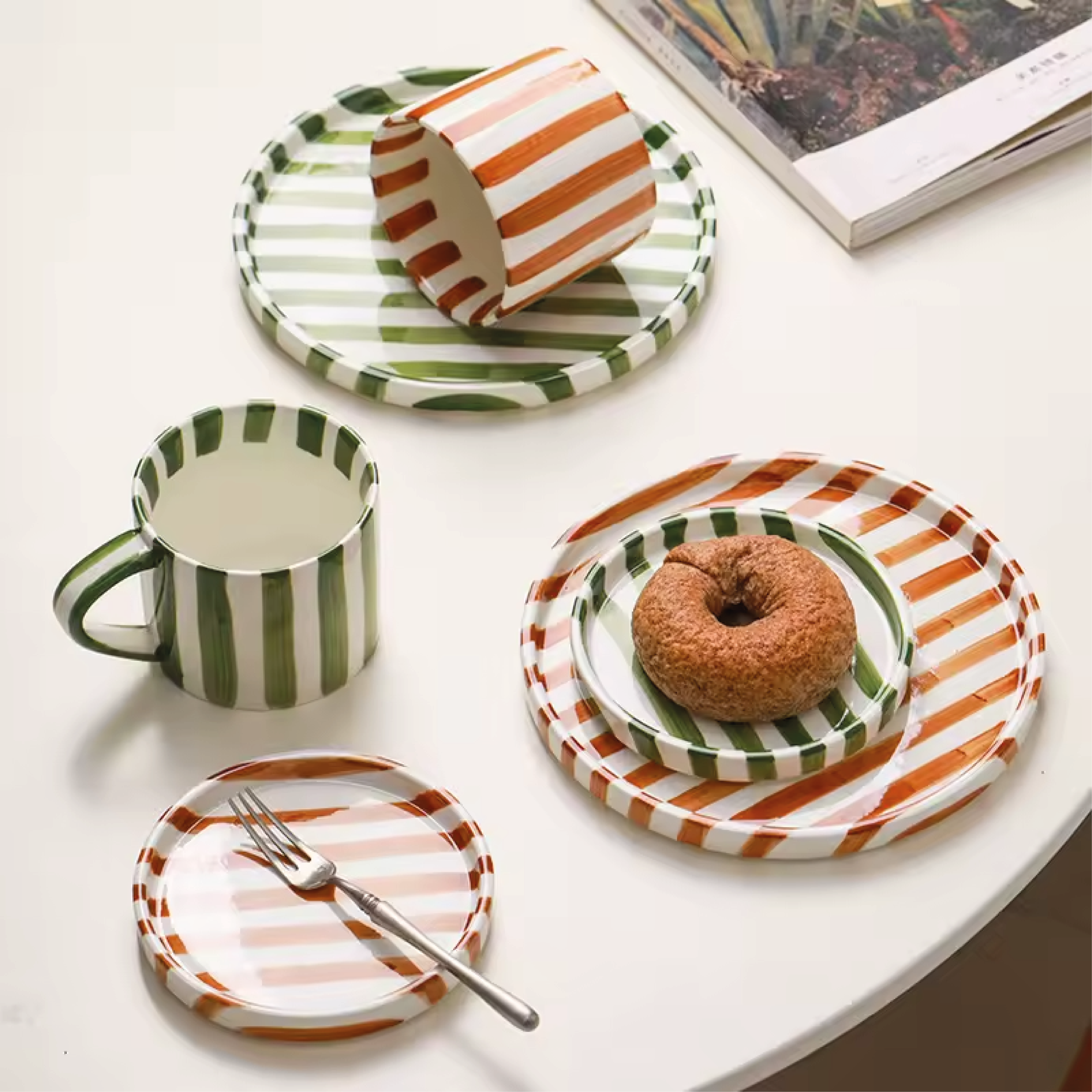 Dale un toque artístico y sofisticado a tus comidas con este set de 3 piezas, una línea de cerámica inspirada en el equilibrio entre el diseño retro y contemporáneo. Cada pieza destaca por su acabado artesanal con pinceladas y rayas que aportan un estilo único a tu vajilla.