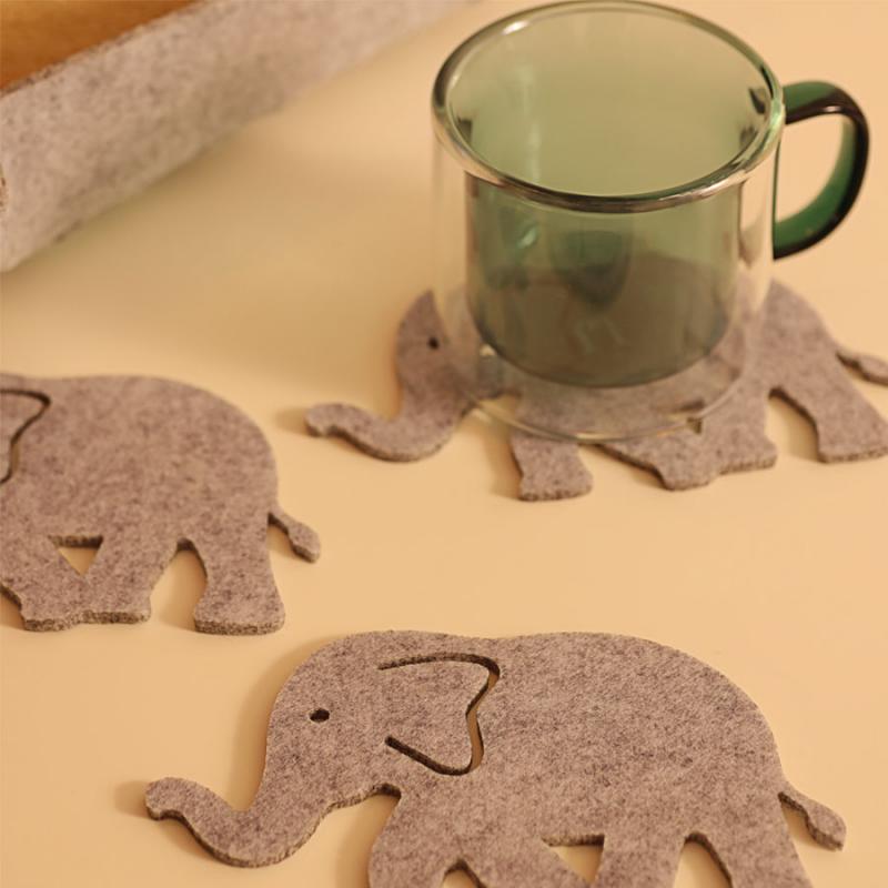 Fanáticos de los elefantes, ¡preparense! tenemos este divino set de 4 posavasos de fieltro que van a amar. genial para darle un toque canchero y acogedor a tu casa, previa y reuniones.