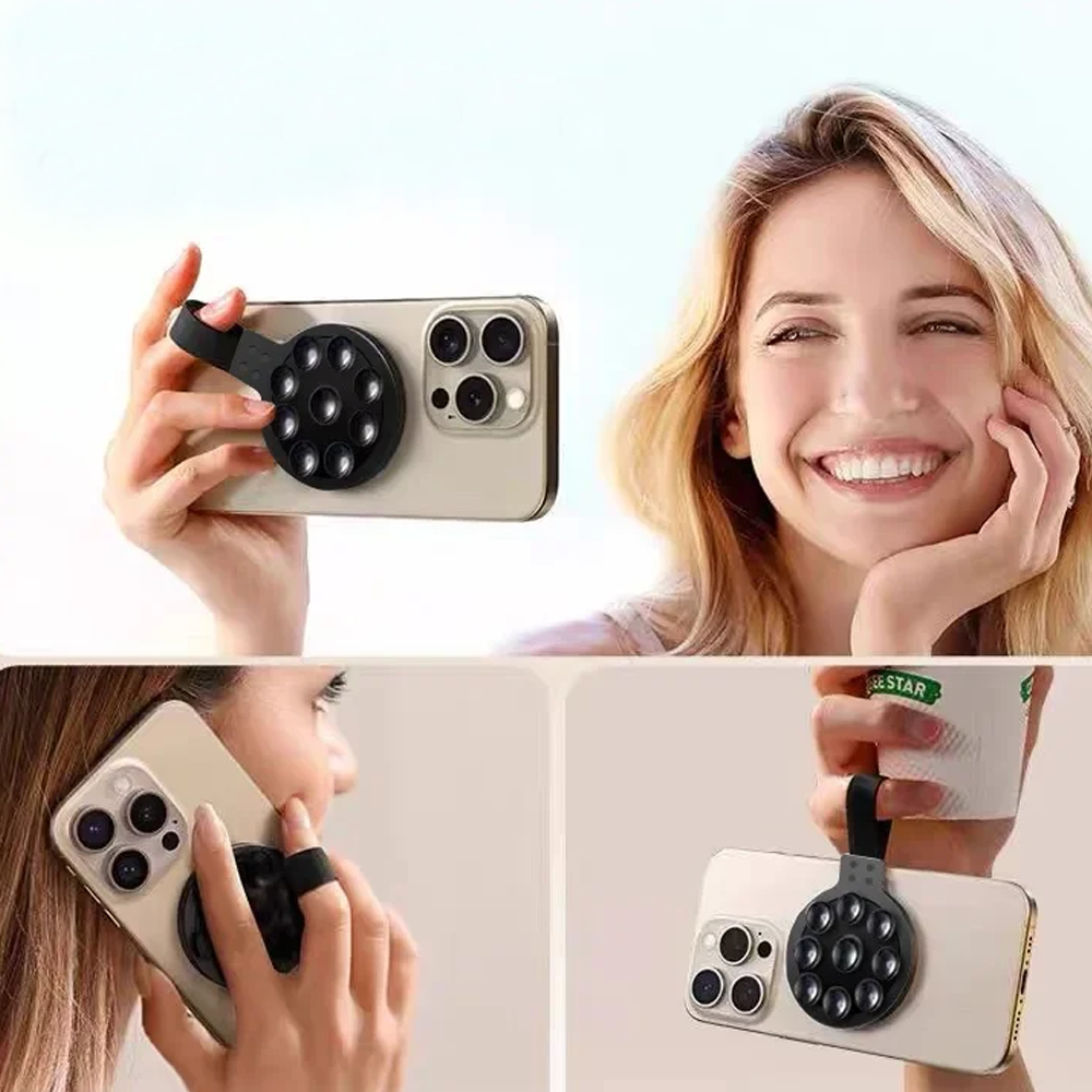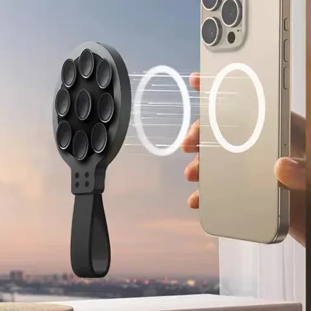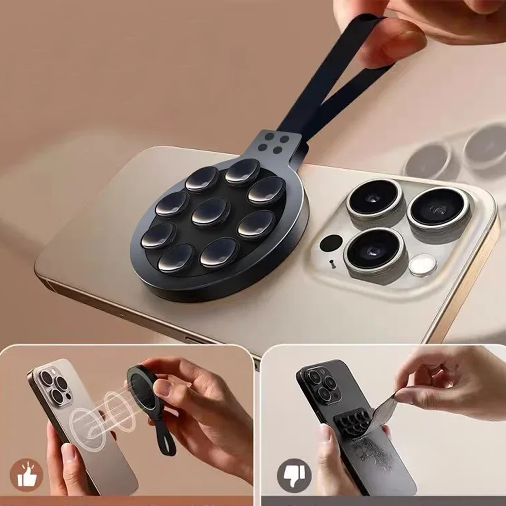Soporte para celular con imán N52 de alta atracción con ventosas de silicona. Compatible con teléfonos de 10.2-17.8 cm, incluidos iPhone 12/13/14/15 y fundas magnéticas. Cuenta con aro imantado con adhesivo super fuerte que se adhiere a tu carcaza o celular (en caso de no ser magnético) con adhesivo 3M. Las ventosas son para colocar sobre superficies lisas (vidrio, mármol, metal). Por último cuenta con cordón de silicona para transportarlo y moverlo sobre las superficies.