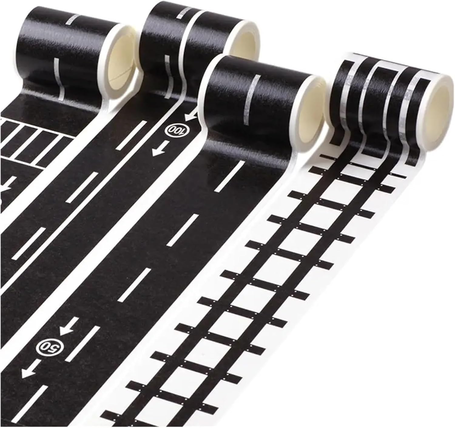 Set de 4 Cintas Diseño Carretera y Vía de Tren de Papel