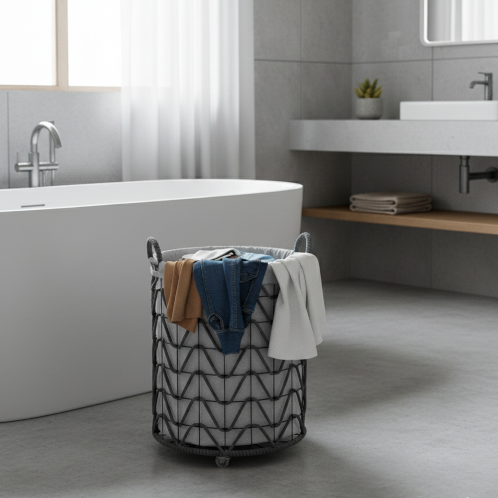Gracias a sus rueditas giratorias, podés moverlo fácilmente de un lugar a otro, ya sea para usarlo como canasto de ropa, contenedor de juguetes o espacio de guardado para textiles y accesorios.