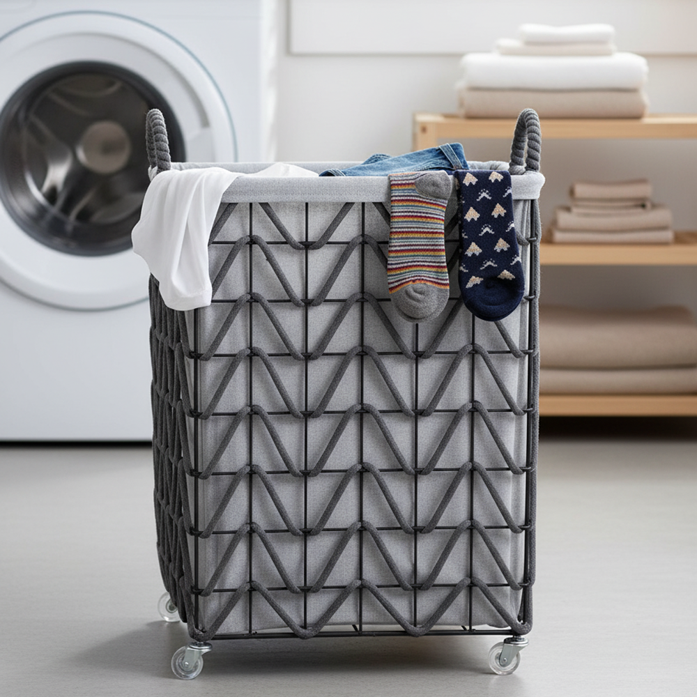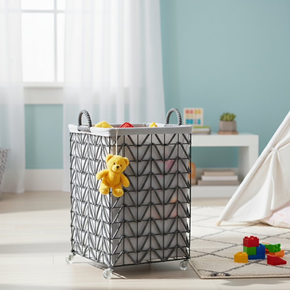 Gracias a sus rueditas giratorias, podés moverlo fácilmente de un lugar a otro, ya sea para usarlo como canasto de ropa, contenedor de juguetes o espacio de guardado para textiles y accesorios.
