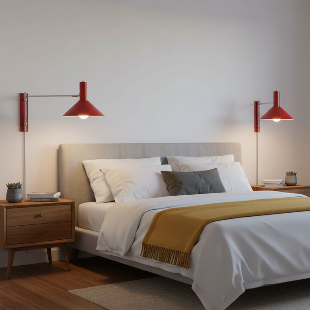 Sumale un toque chic y funcional a tus espacios con esta lámpara de pared Mid. Tiene un diseño moderno y delicado, en color rosa metálico, que combina lo estético con lo práctico. Su brazo oscilante permite direccionar la luz justo donde la necesitas: ideal para lectura, rincón de estar o como punto de luz decorativo.