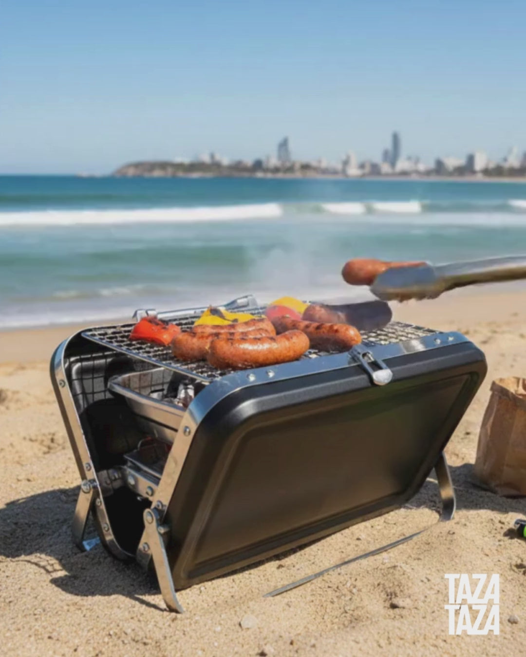 Llevá el sabor del asado a donde vayas. Ideal para campings, días de playa, picnics o escapadas al aire libre, esta práctica parrilla portátil a carbón te permite cocinar fácilmente en cualquier lugar.